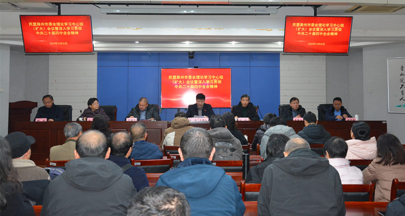 12月20日,民盟滁州市委会召开理论学习中心组(扩大)学习会议,专题学习中共二十届四中全会精神。民盟市委会主委江海主持会议,副主委陈贵、肖陆飞参加会议。