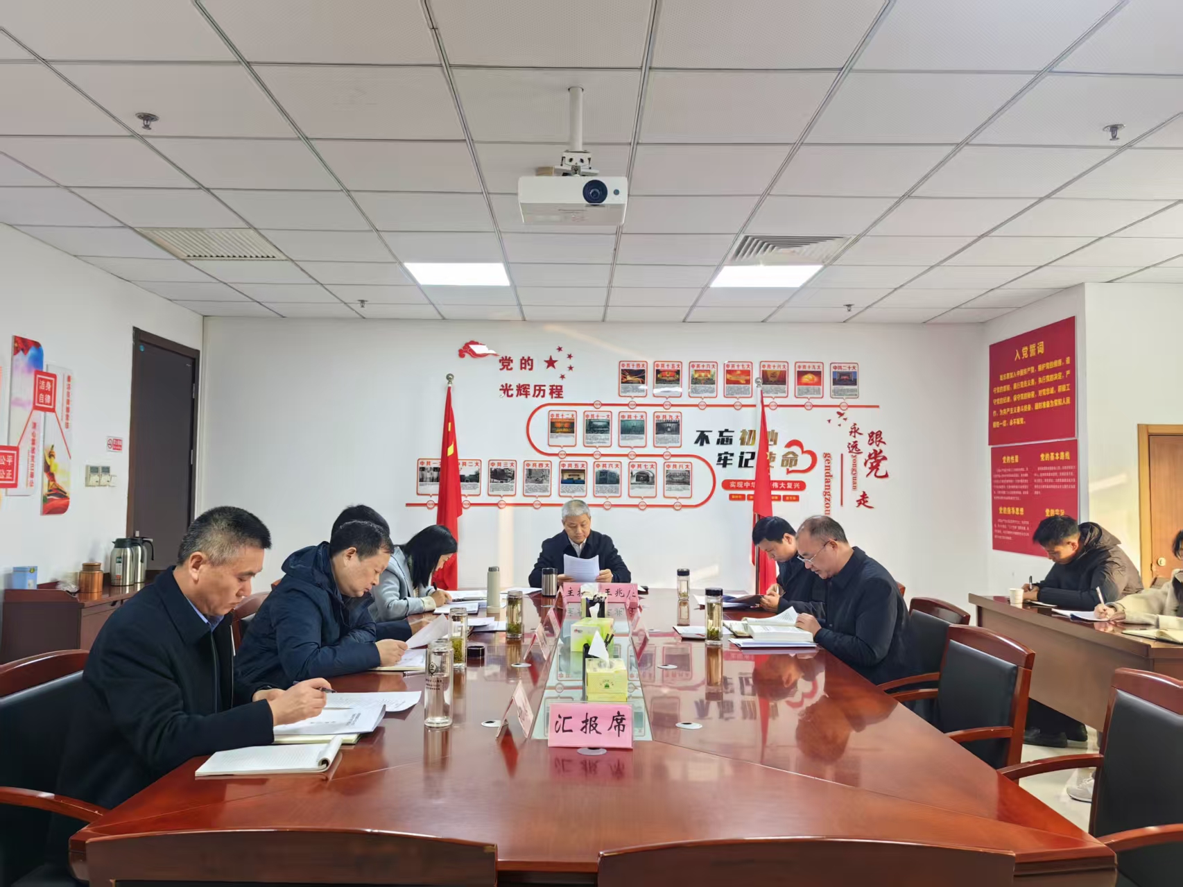 会议学习了习近平总书记重要文章《推进党的自我革命要做到“五个进一步到位”》、《习近平谈治国理政》第五卷第十八章内容。