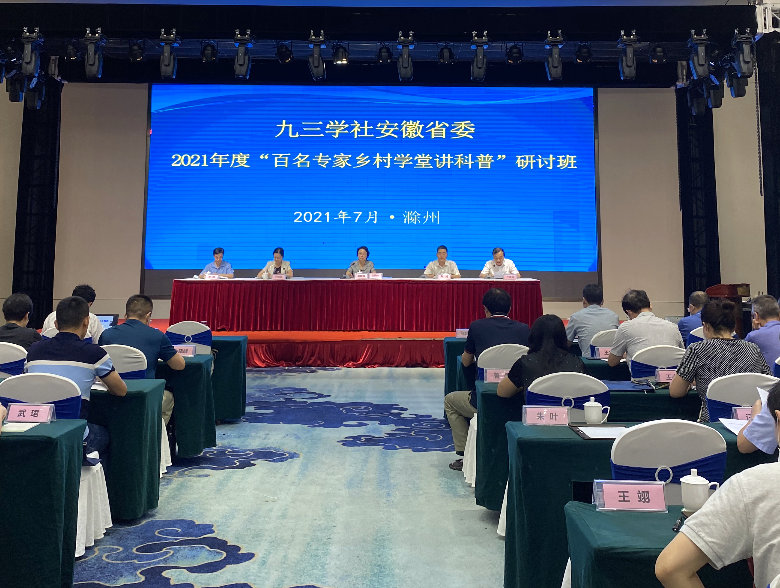 7月23 日至24日,九三学社安徽省委“百名专家乡村学堂讲科普”研讨班在滁州举办。全省九三学社市委会、相关直属组织“讲科普”活动专家代表、负责同志60余人参加会议。九三学社安徽省委专职副主委张腊梅、秘书长卢明霞,省科协党组成员、副主席刘旭出席研讨班活动。九三学社滁州市委主委、市经信局局长宁建斌致辞。