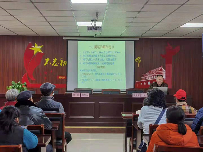 科普讲座的主题为《腹痛与常见病》,社区的居民和社区干部50余人到场聆听。杜华劲用通俗易懂的语言,图文并茂的图解,深入浅出的讲述了阑尾炎、胆囊炎、胆囊结石、输尿管结石等常见病症的预防、诊断及治疗方法。社区居民通过讲座提高了对腹痛与常见病的认识,了解正确处理方式,降低疾病带来的危害,提高生命健康质量,并现场回答居民的健康咨询。