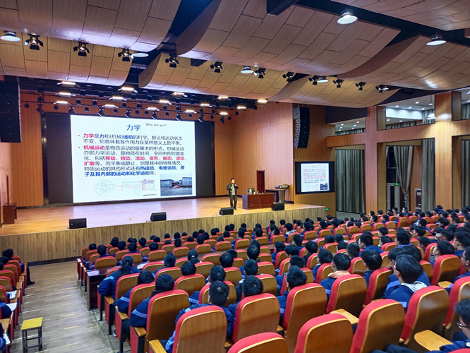 倪向贵以《侃成语,悟力学》为主题为同学们开展了一场生动的力学科普。讲座通过一些通俗易懂的成语和俗语典故入手,深入浅出的分析了其中蕴含的力学知识,让同学们了解力学基本概念,同时拓展到力学在国防、航空航天、深海探索、深地钻探和日常生活中的各类应用,拓宽了同学们的视野。