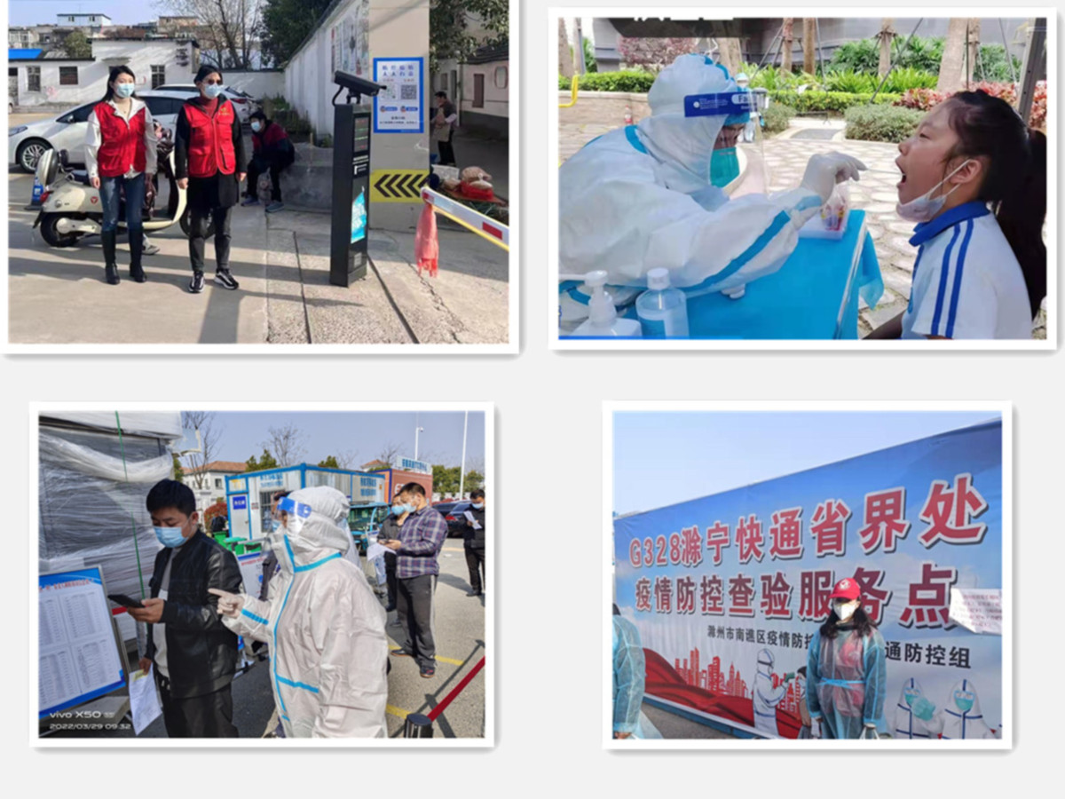 广大会员积极参与到志愿者行列,承担交通卡口和联系社区分配的疫情防控任务。在滁州南高速路口,文化支部会员张娟穿着防护服指导驾乘人员填写“滁州核酸检验”小程序地址信息;在滁宁快速通道路口,经济支部会员蒋莉莎雨中查验外来人员健康码、通信大数据行程码、48小时核酸检测报告。她们与党员干部站在一起,守住入滁关口,筑牢外防输入的“第一道防线”。