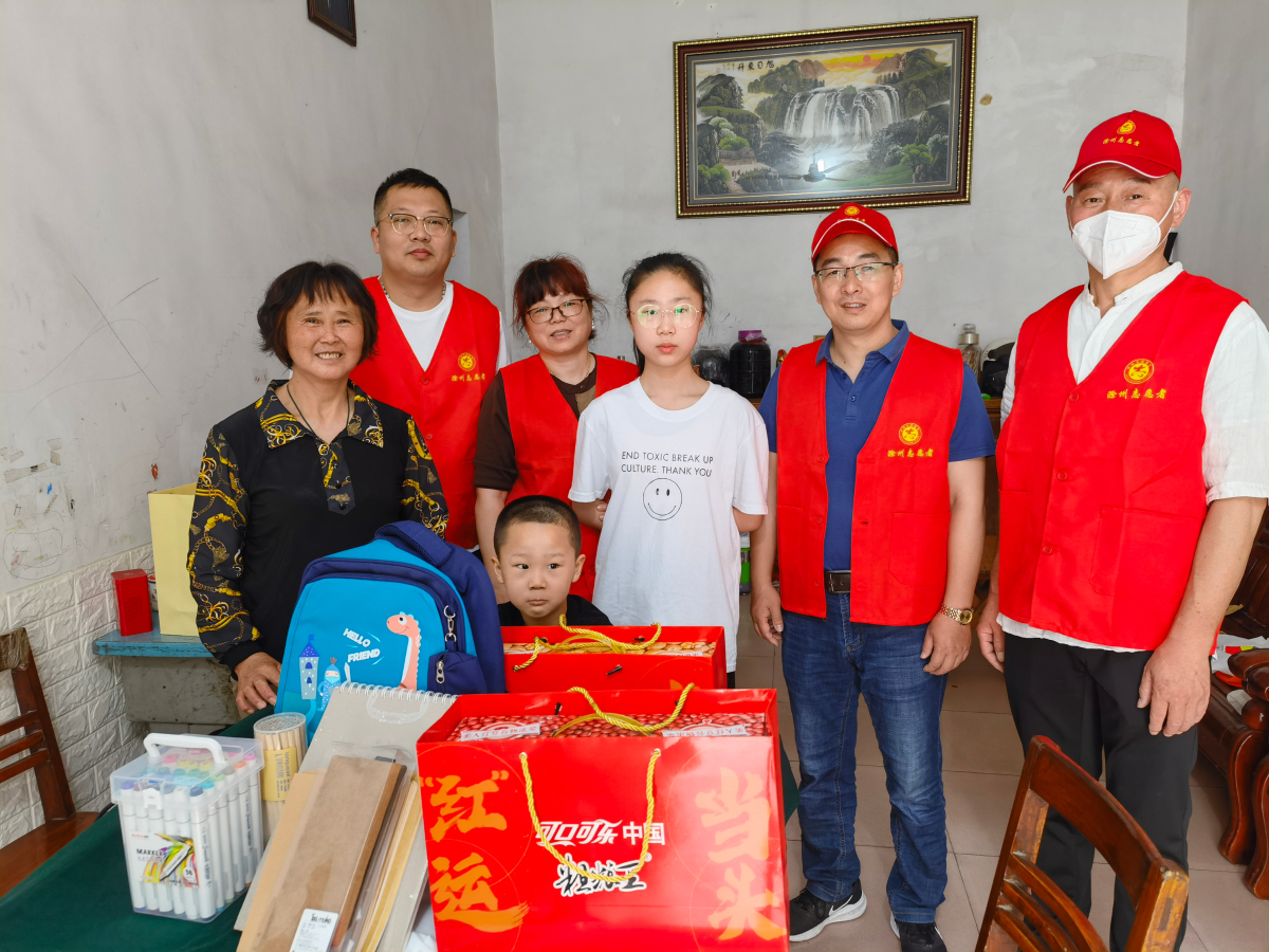 关爱相伴、情暖童心,志愿者们首先来到社区留守儿童家,向小朋友致以节日的祝福和亲切的问候,为孩子送上书包、文具、粗粮王等节日礼物,并详细了解孩子目前的生活和学习情况,勉励她要自信自强、努力学习,用知识改变现状,回报祖国和社会。