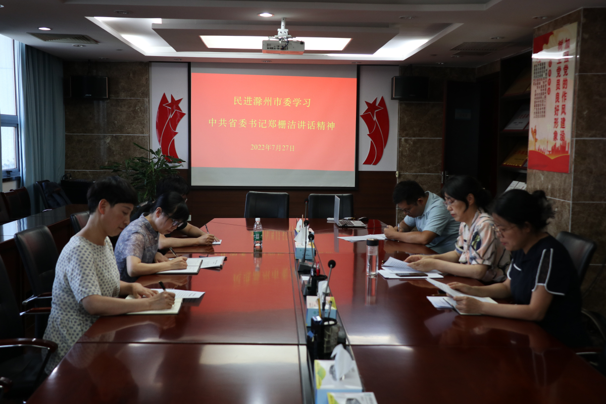 7月27日下午,民进市委主委李世平主持召开民进滁州市委会主委会议,传达学习中共安徽省委书记郑栅洁在省民主党派新一届领导班子座谈会上的讲话精神。