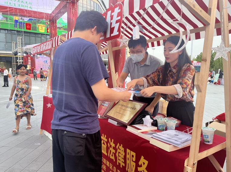 2022年7月29日晚,“民革公益法律服务”团队在滁州市南谯区吾悦广场的“谯梁夜市”活动中,以摆摊形式将“普法宣传”深入群众,提供免费法律咨询服务。来自民革法律特色支部的琅琊区总支一支部民革党员张晓敏、程铭向群众散发民法典宣传手册,为群众答疑在购买产品、房屋征迁等方面遇到的各种法律问题,受到了群众的热烈欢迎和积极参与。