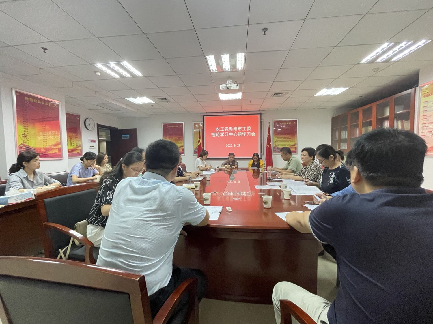 8月29日,农工党滁州市工委召开理论学习中心组(扩大)会议。市人大常委会副主任、工委主委查镜波主持会议,副主委毕璧、洪卫东及工委委员、专委会主任、各基层支部委员参加会议。