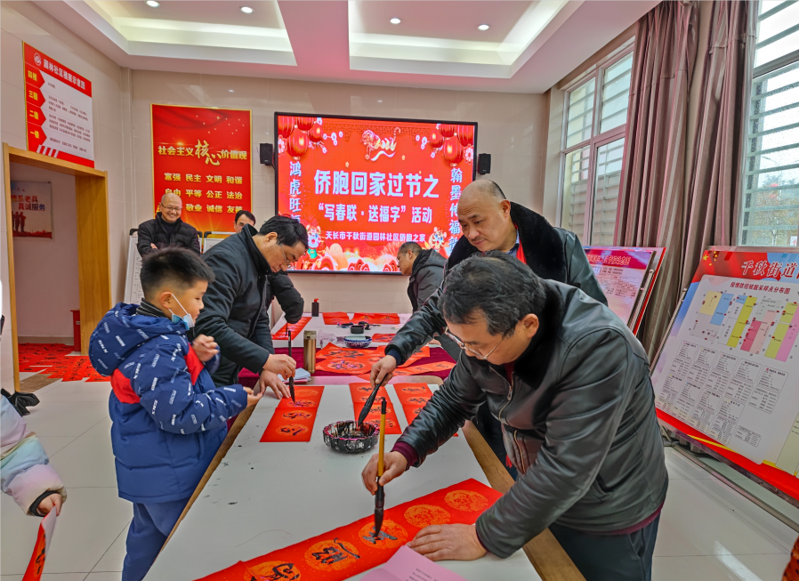新春佳节即将来临,为了让社区侨胞侨眷感受到社区“侨胞之家”大家庭的温暖,增进侨胞侨眷对祖国的热爱,1月26日下午,天长市园林社区“侨胞之家”在市委统战部、市侨联的精心指导下,组织开展“侨胞回家过节”之“写春联 送福字”活动,来自辖区的书法爱好者、归侨侨眷及居民共20余名参加了此次活动。