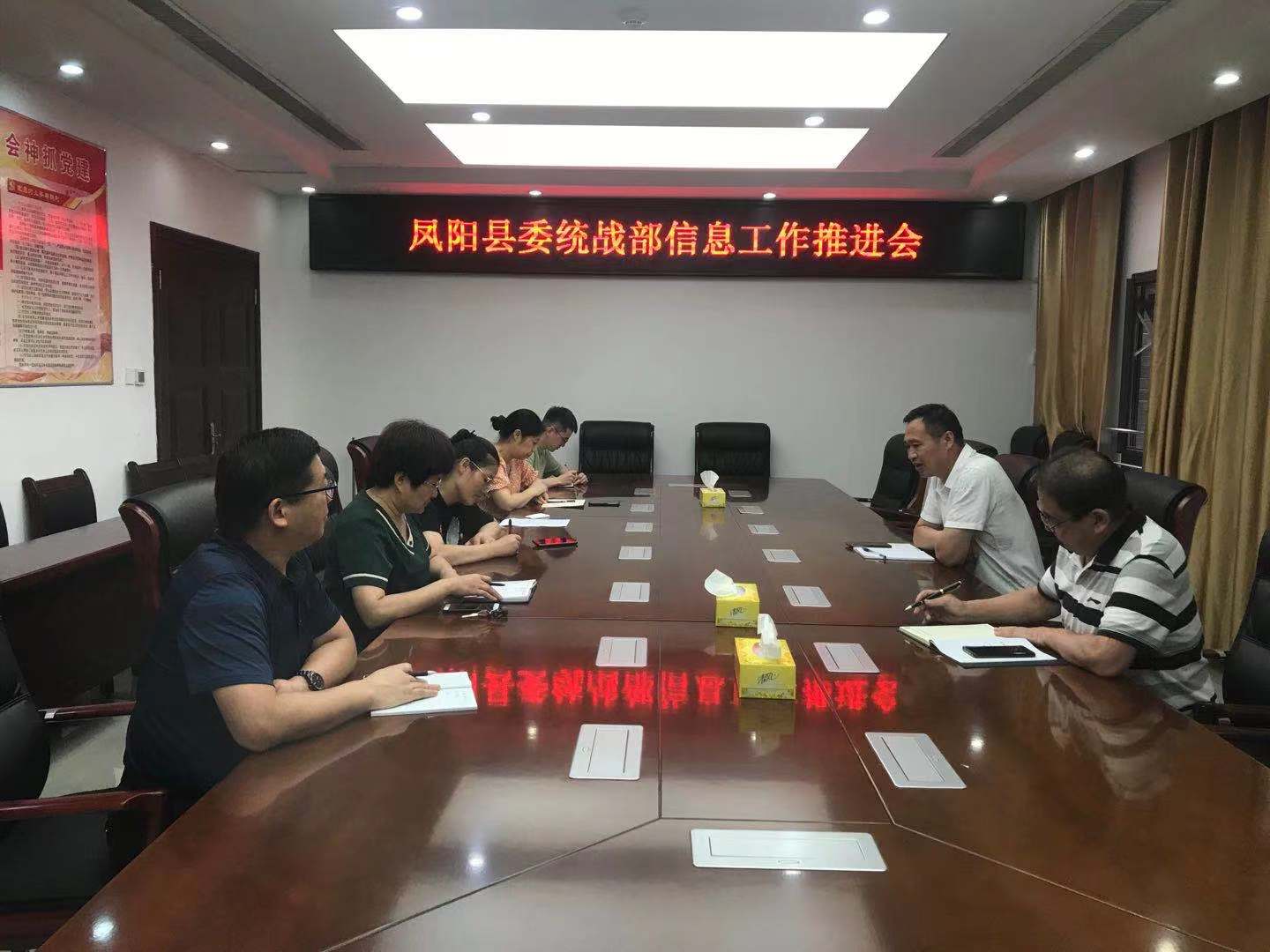 6月29日上午,凤阳县委统战部副部长陈光锐主持召开信息工作推进会,总结今年以来凤阳县统战信息工作开展情况,分析了存在的问题和不足,对下一步工作提出了具体要求。