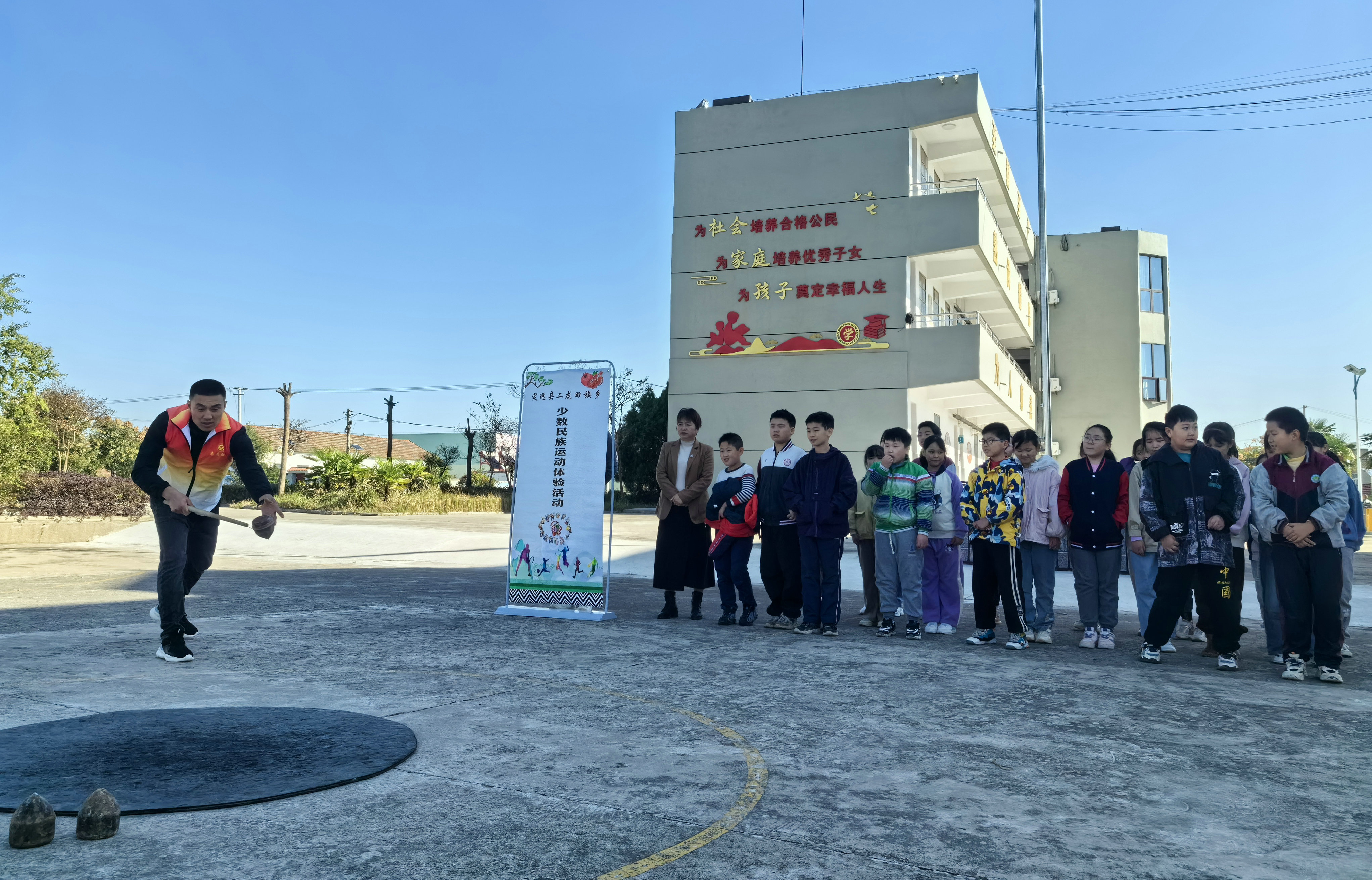 11月9日,定远县二龙回族乡组织20余名各族师生开展少数民族传统体育运动体验活动,通过志愿者示范讲解,学习体验蹴球、陀螺等少数民族传统体育运动项目比赛规则、动作要领等,引导树立“我运动 我健康 我快乐”的健康生活理念。